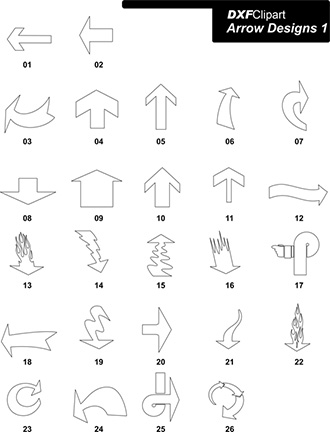 This batch of 2D DXF Art Arrow Designs contains 26 2D DXF files. Each DXF Arrow Design file is pre-scaled in inches, not millimeters. However, any CAD Design or CAD/CAM software should be able to re-scale each 2D DXF file as needed.