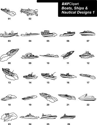 This batch of 2D DXF Art Boats, Ships & Nautical Designs contains 26 2D DXF files. Each DXF Boats, Ships & Nautical Design file is pre-scaled in inches, not millimeters. However, any CAD Design or CAD/CAM software should be able to re-scale each 2D DXF file as needed.